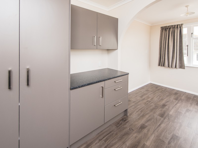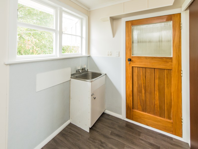 •Large laundry has a facility for a wall hung tumble clothes dryer including a flue to
